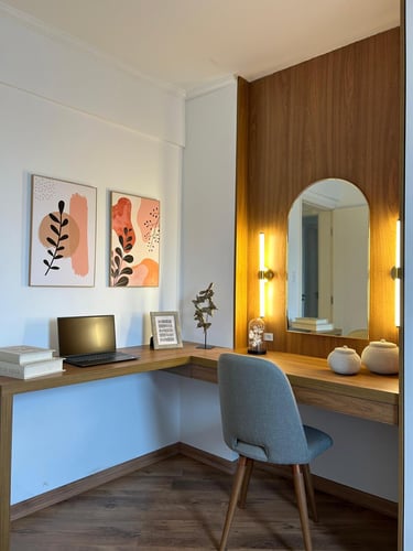 O resultado foi um ambiente renovado, limpo e cheio de identidade, onde cada detalhe traduz a sensibilidade da cliente. Um apartamento mais doce, mais elegante e que devolveu a ela o prazer de estar em casa.